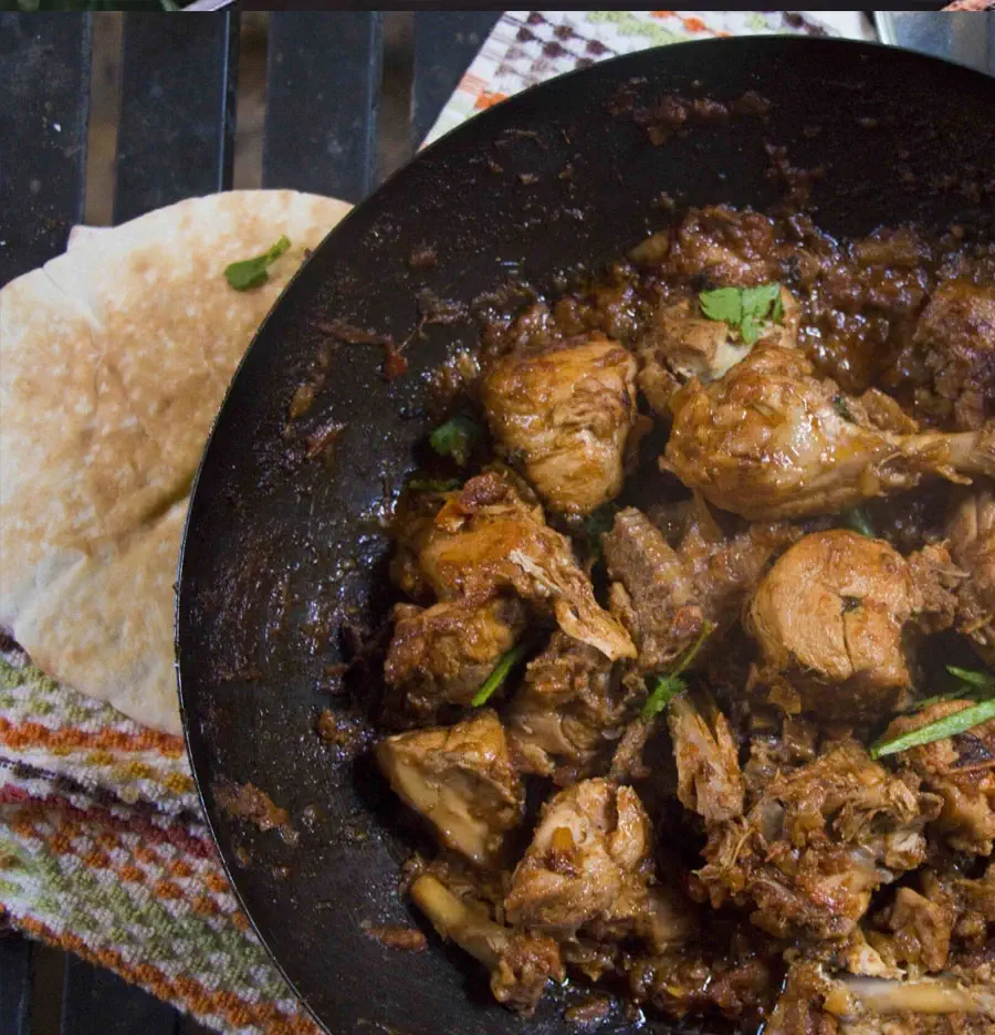 Rich and flavorful chicken cooked in a traditional brown karahi masala.