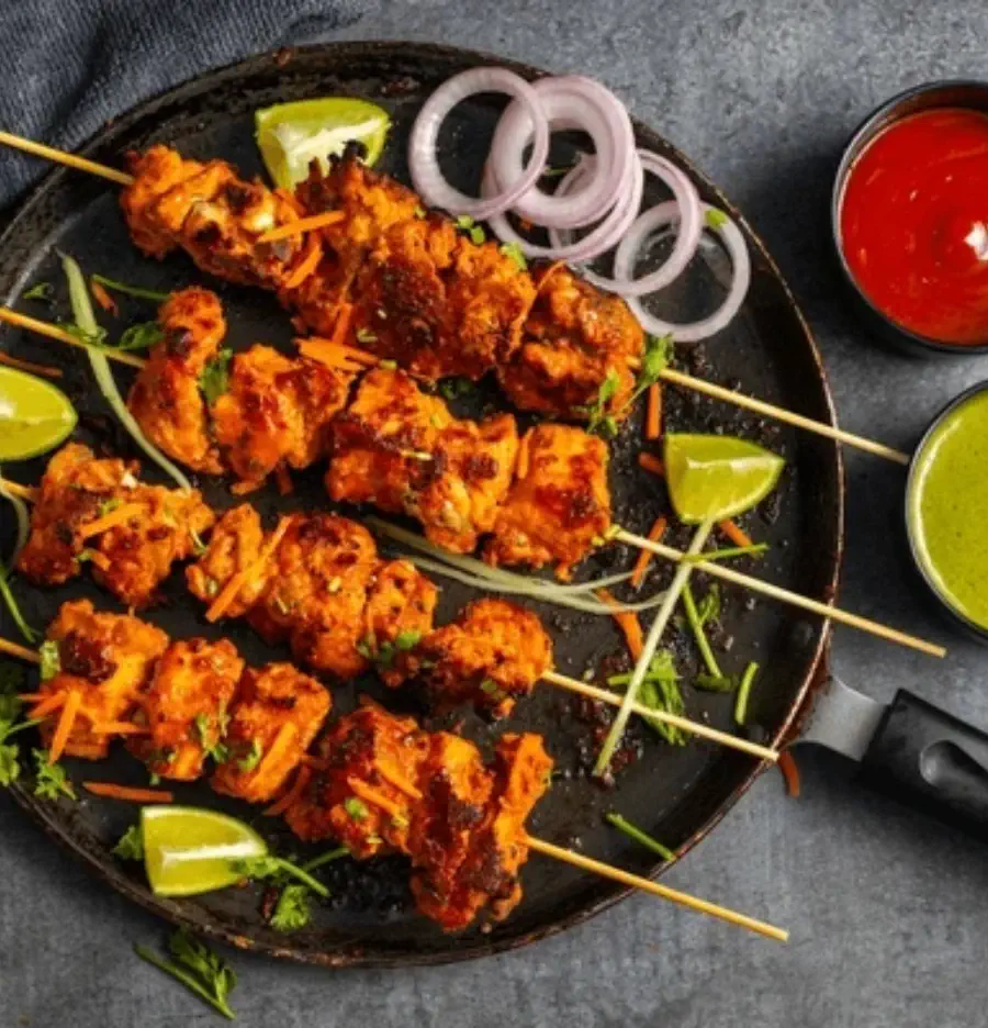 Our Chicken Red Tikka is made with tender boneless chicken pieces marinated in yogurt, red chili, and a blend of traditional spices, giving it a bold flavor and signature red hue. Grilled to perfection, it’s smoky, succulent, and perfect with naan, chutney, or salad.