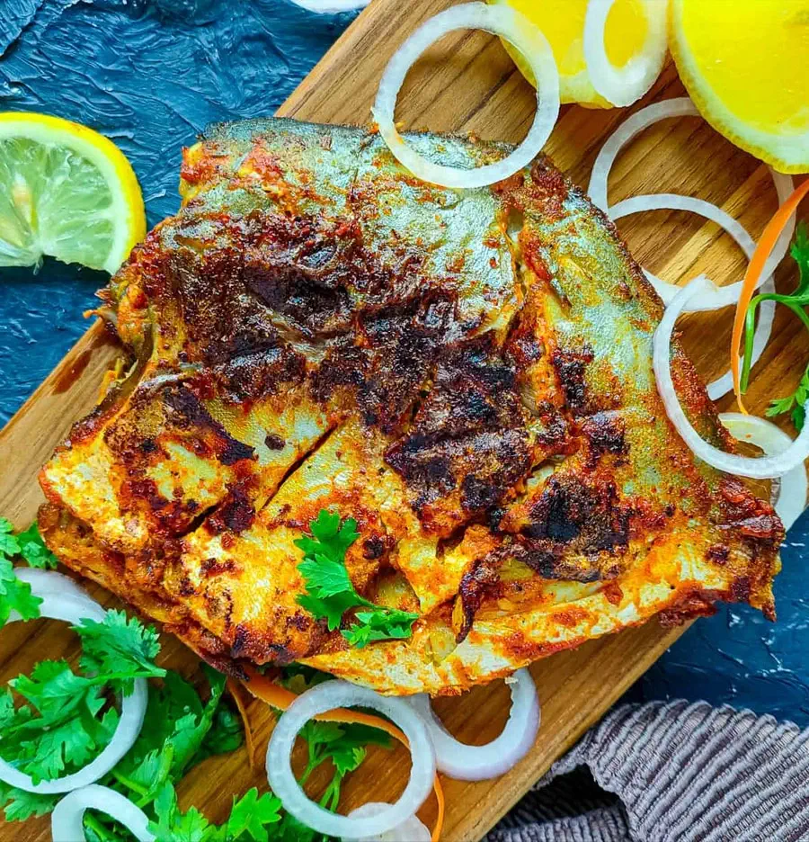 Our White Pomfret is a delicious seafood dish made with fresh white pomfret fillets, marinated in a blend of traditional spices and herbs, and cooked to perfection. Juicy and flavorful, it’s ideal to enjoy with steamed rice, naan, or a fresh salad for a wholesome meal.
