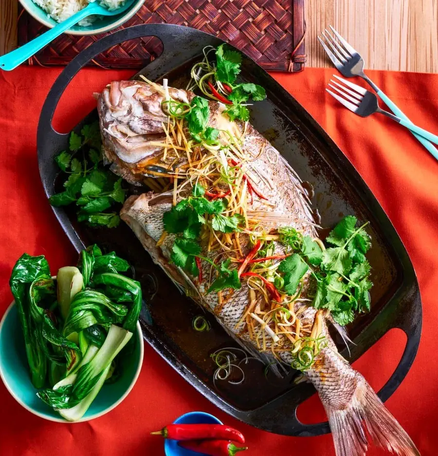 Our Whole Fish with Shanghai Style is a true seafood delicacy! A whole fish is marinated with spices, fried to a golden crisp, and then topped with a rich Shanghai-style sauce made from garlic, soy, chili, and a hint of sweetness. Garnished with stir-fried vegetables and fresh herbs, this dish brings the bold flavors of Chinese cuisine right to your table. Perfect for seafood lovers who enjoy a complete, flavorful feast.